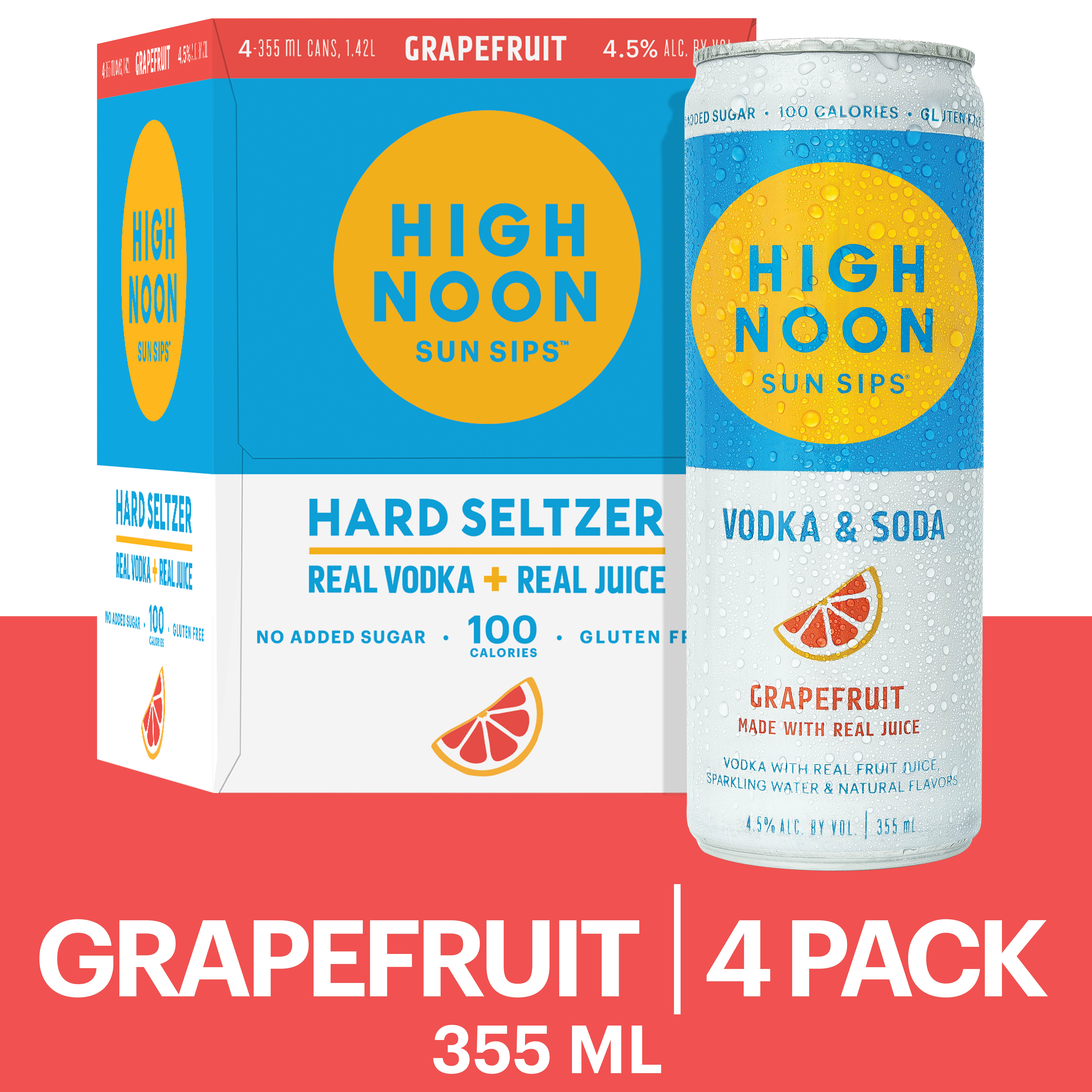 High Noon Grapefruit Vodka Hard Seltzer 4 Single Serve 355ml Cans - Walmartcom